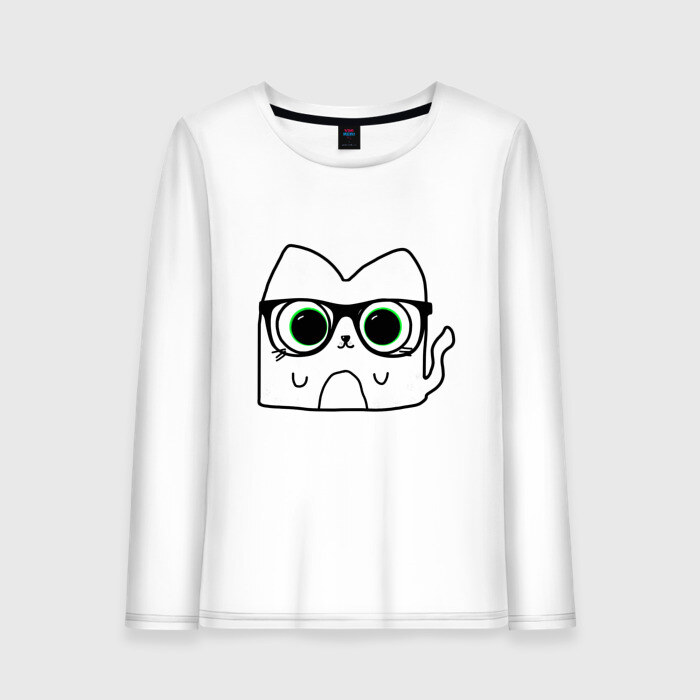 Женский лонгслив хлопок с принтом Кот Зефир очкарик