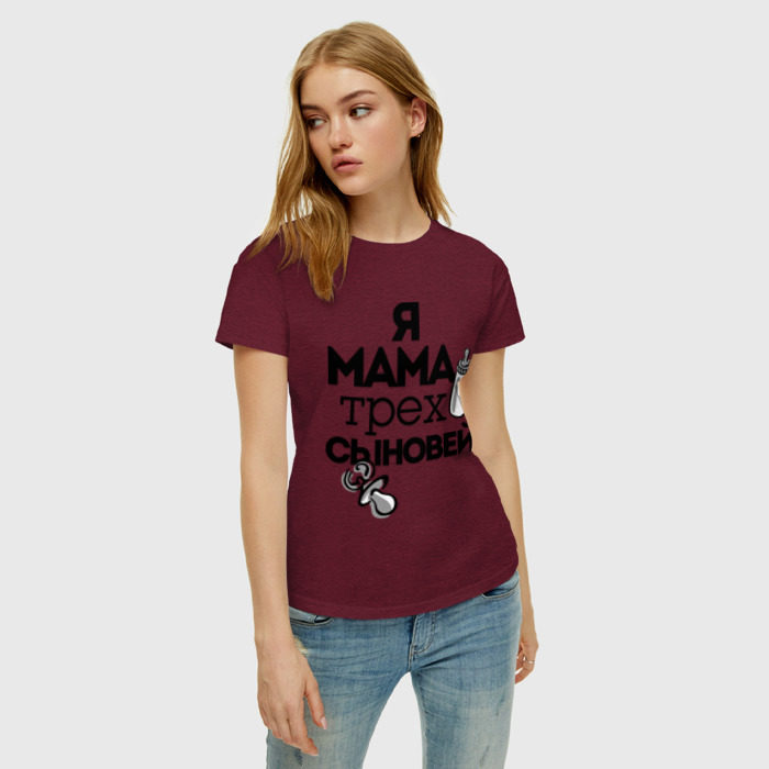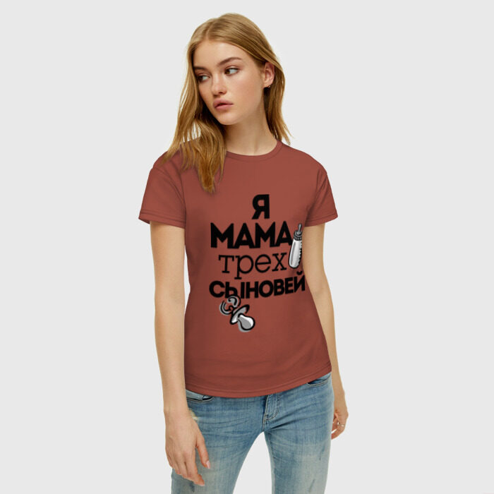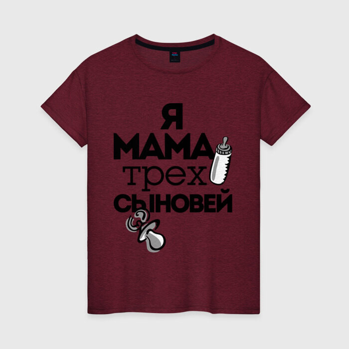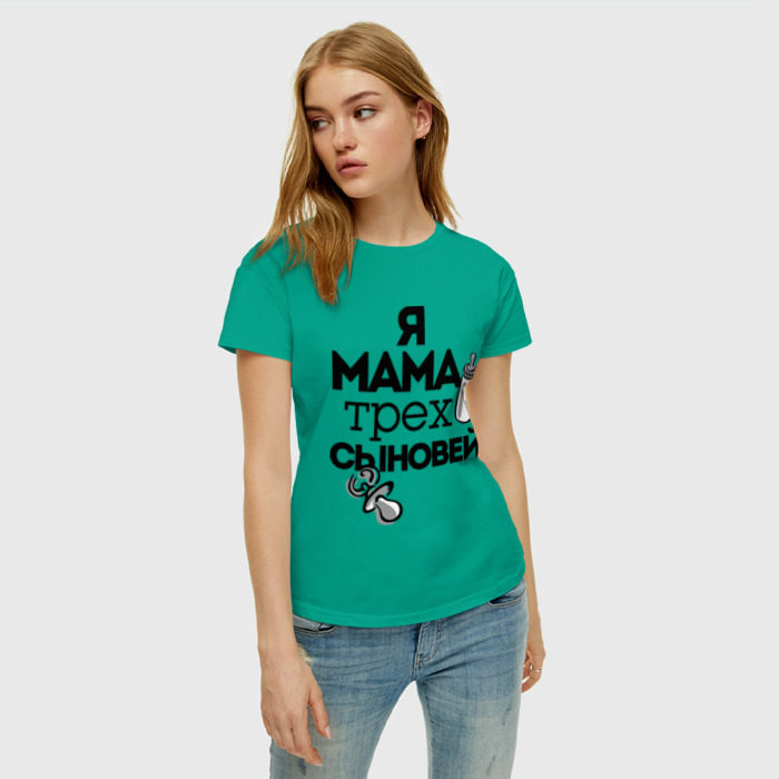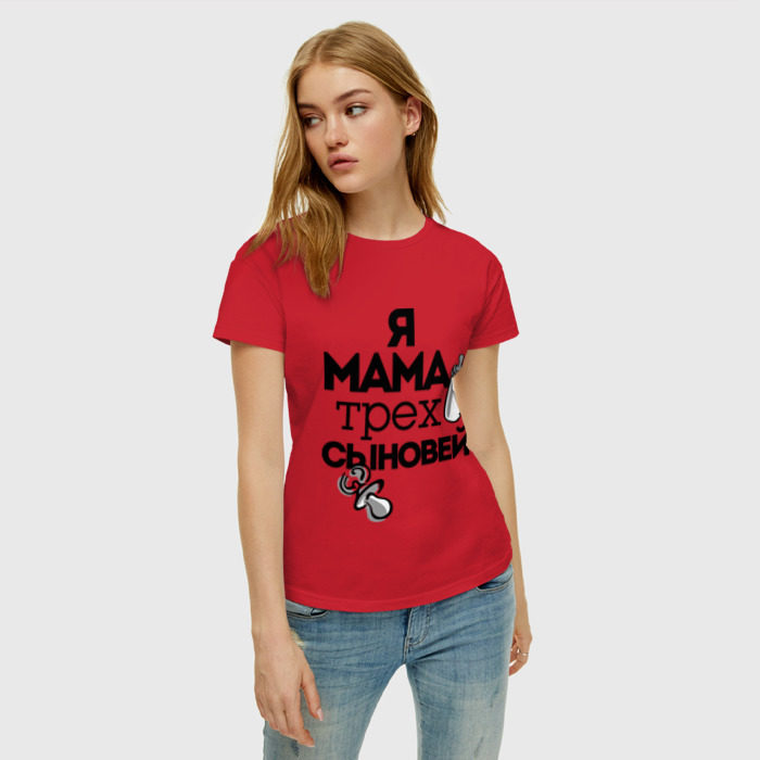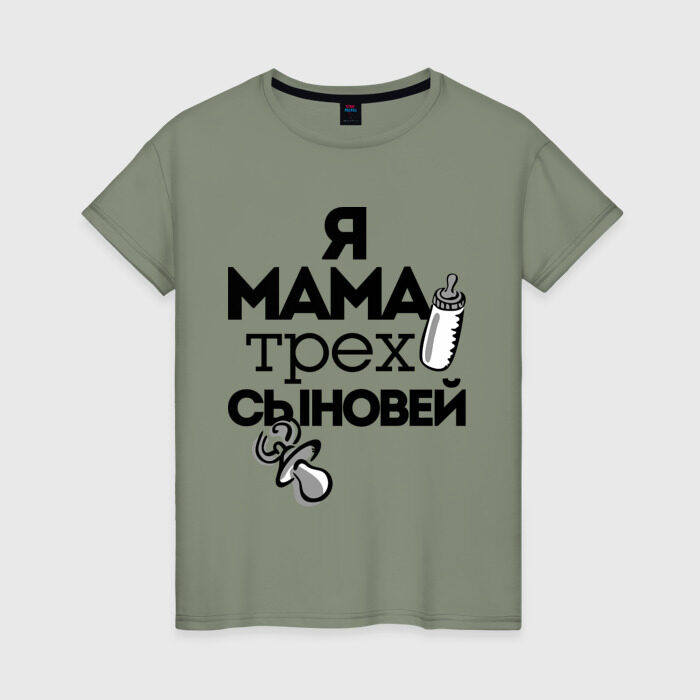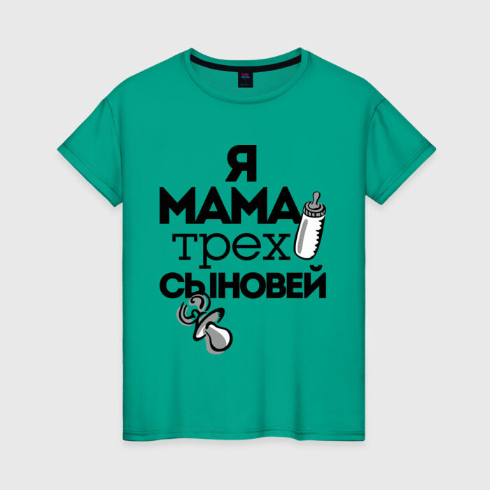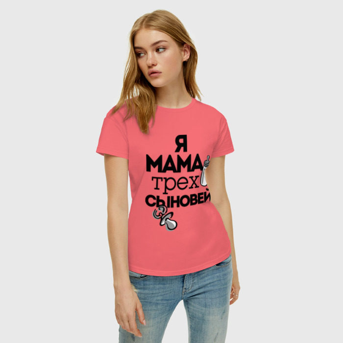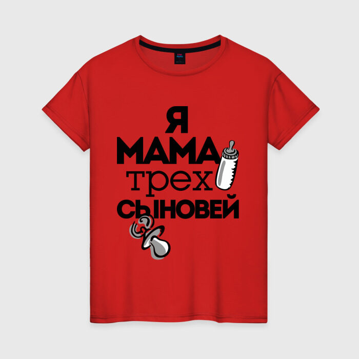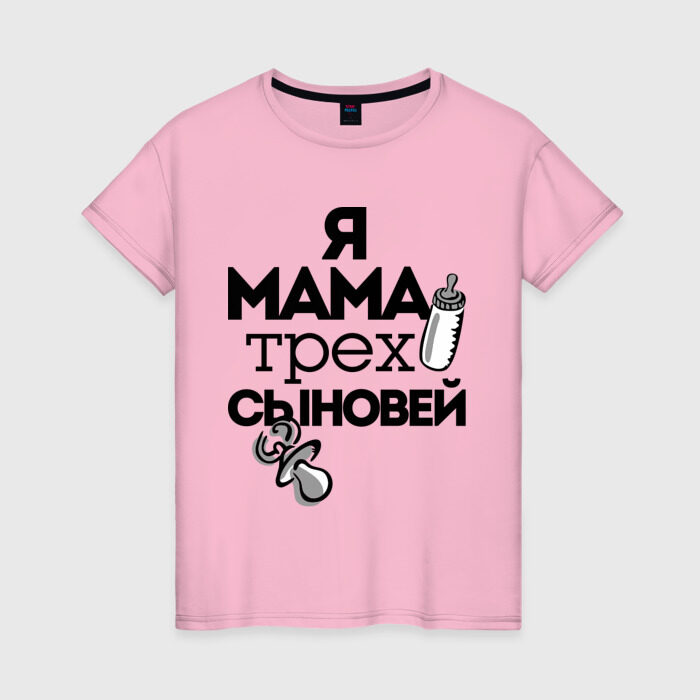 Женская футболка хлопок с принтом Я мама трёх сыновей