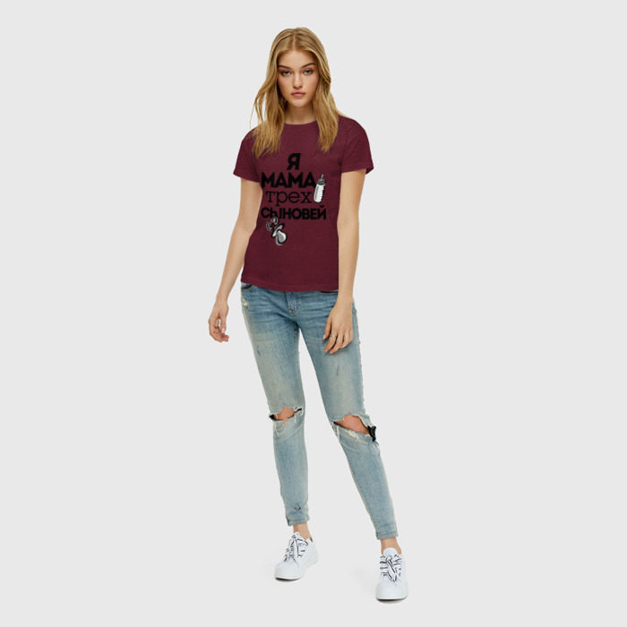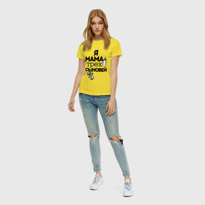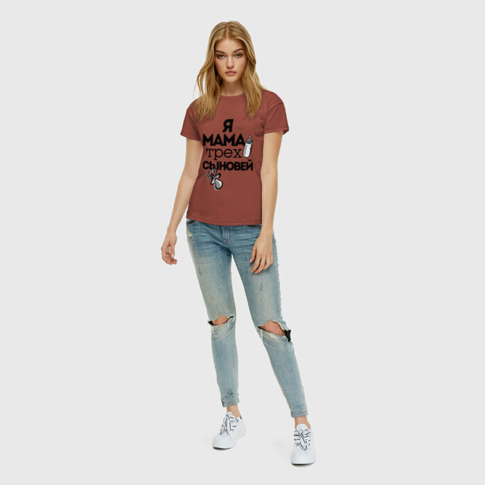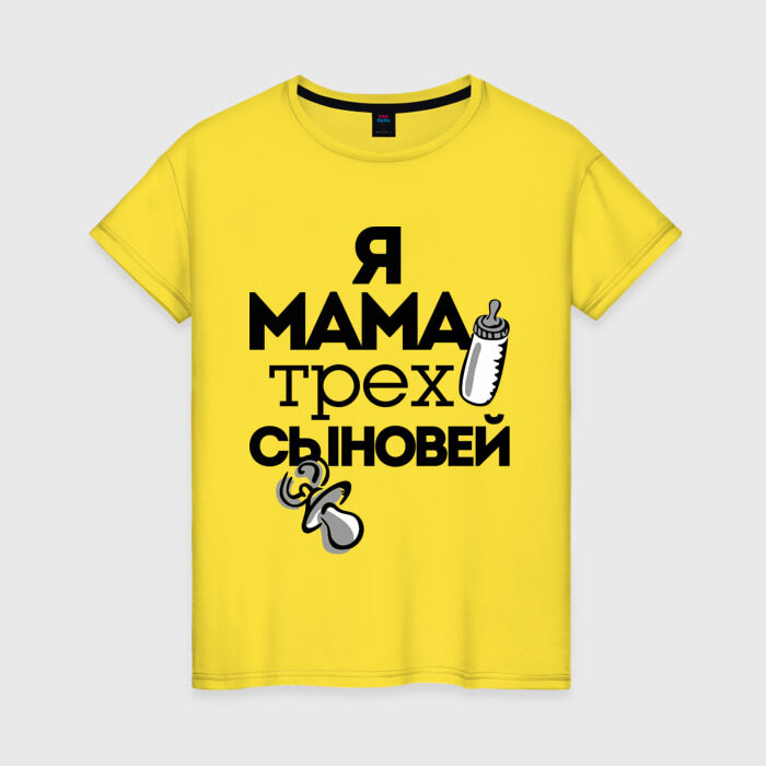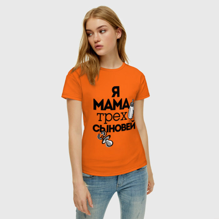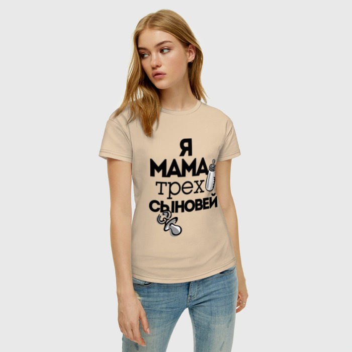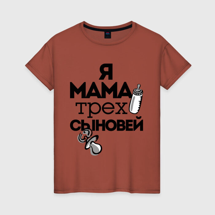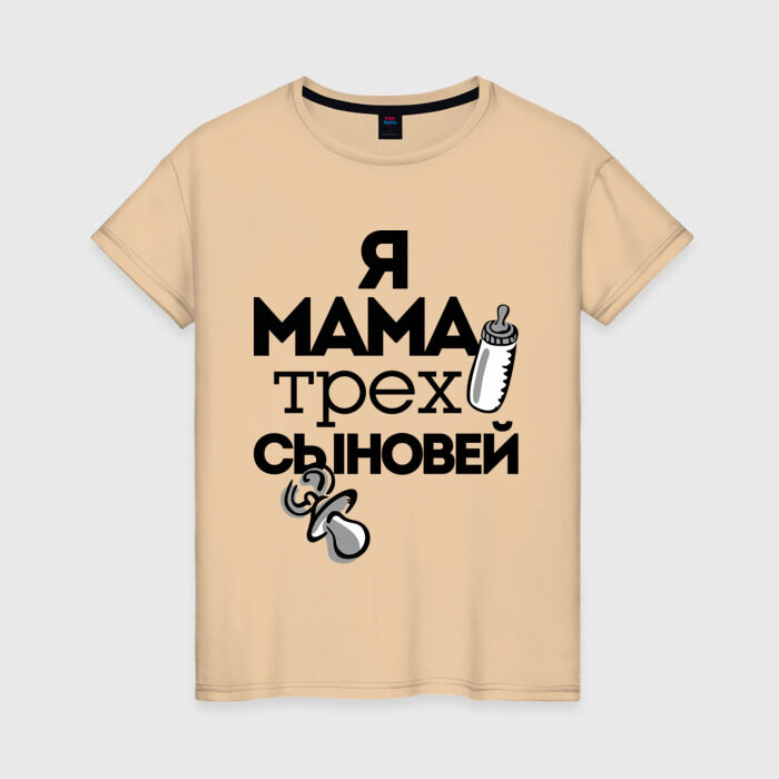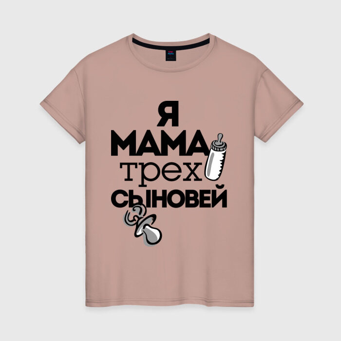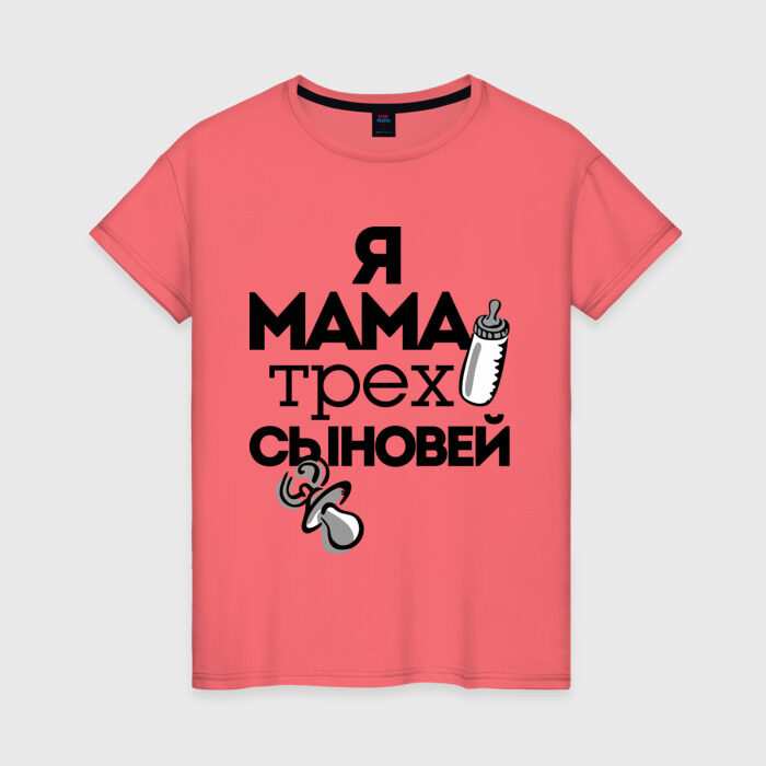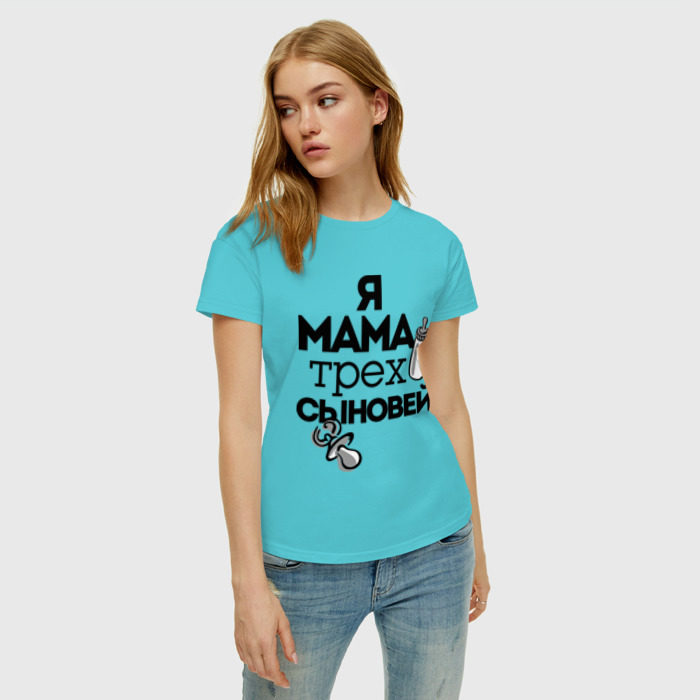 Женская футболка хлопок с принтом Я мама трёх сыновей