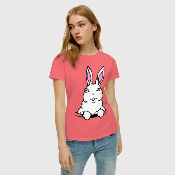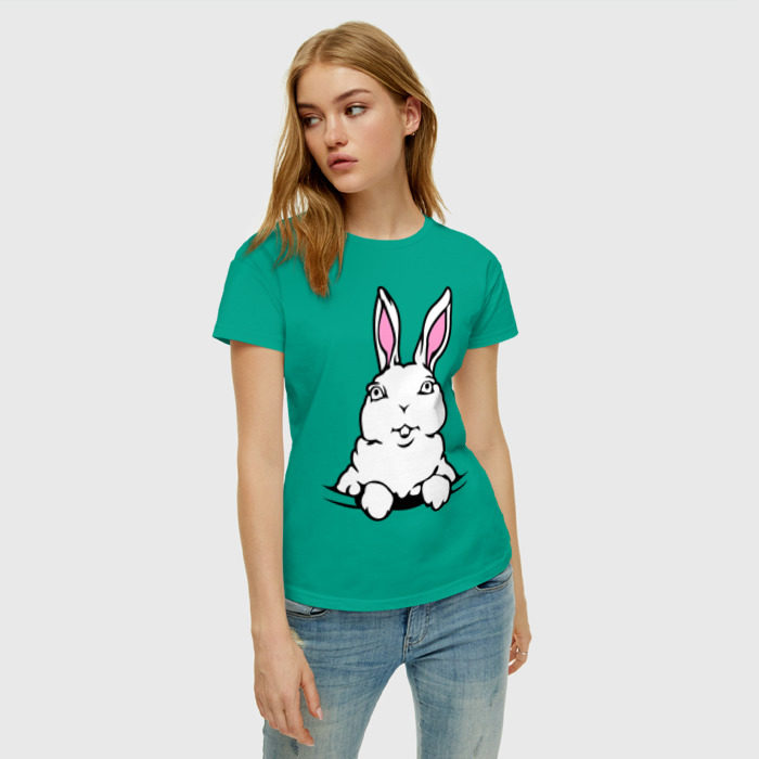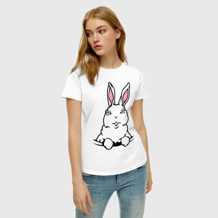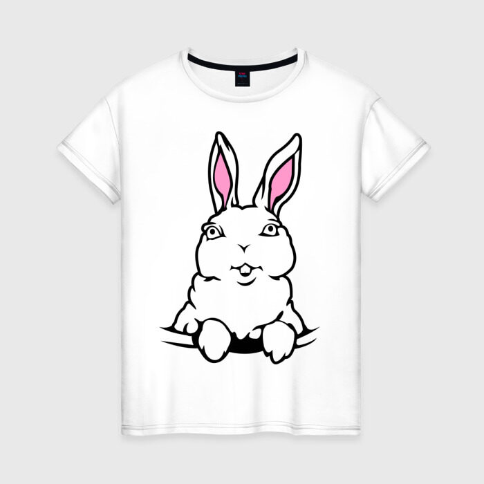Женская футболка хлопок с принтом Зайчик в кармашке