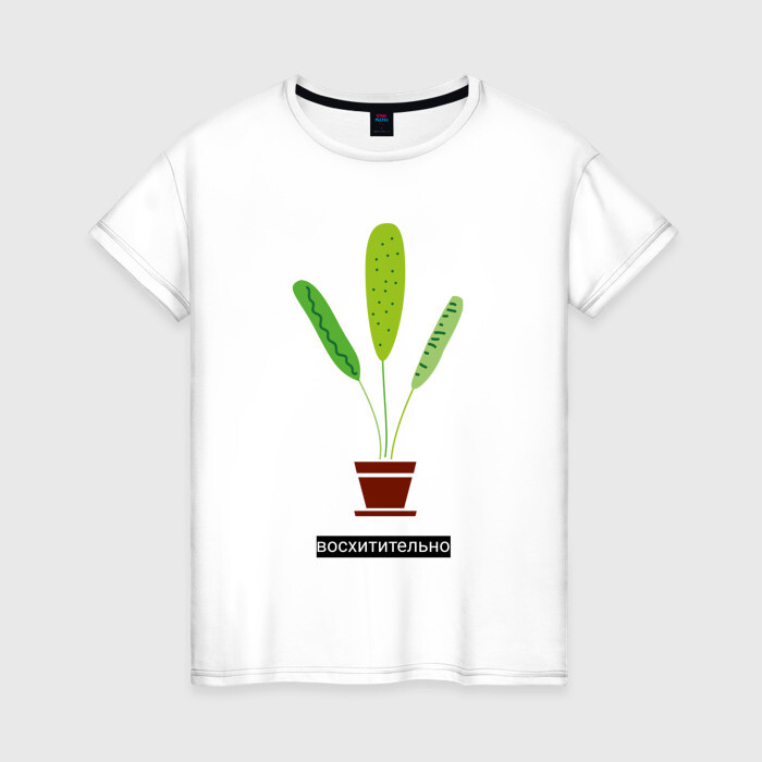 Женская футболка хлопок с принтом Растение в горшке Восхитительно