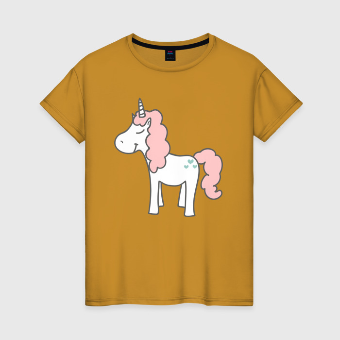 Женская футболка хлопок Довольный единорoг