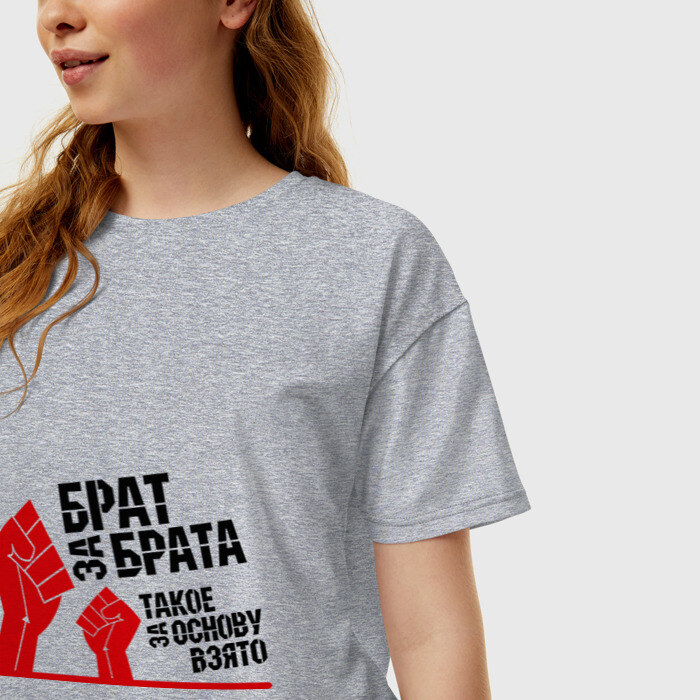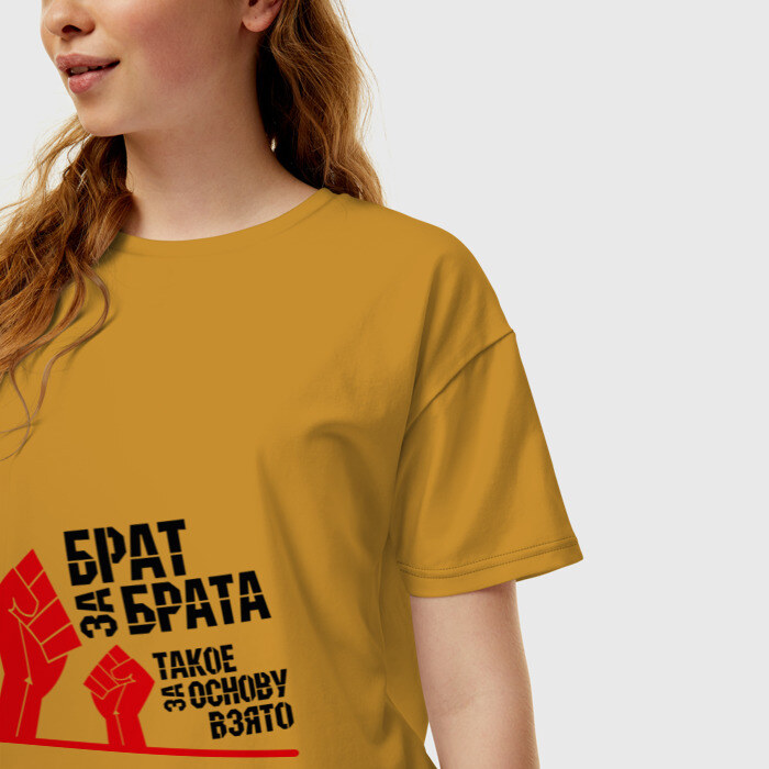 Женская футболка хлопок Oversize с принтом Брат за брата (1)