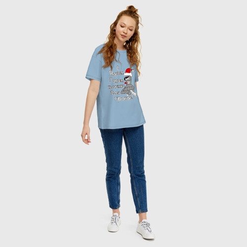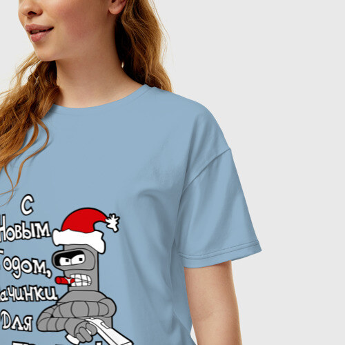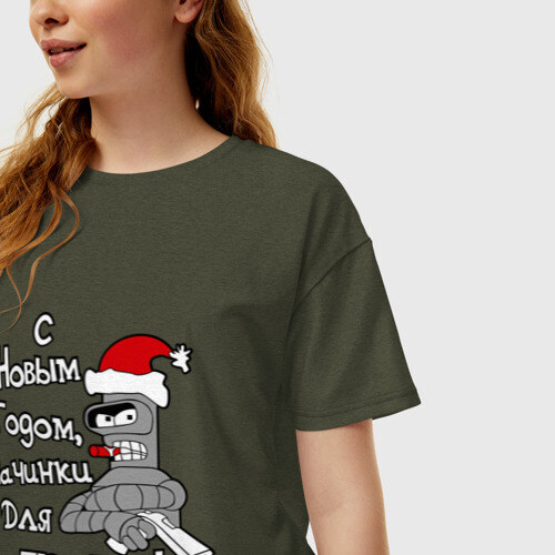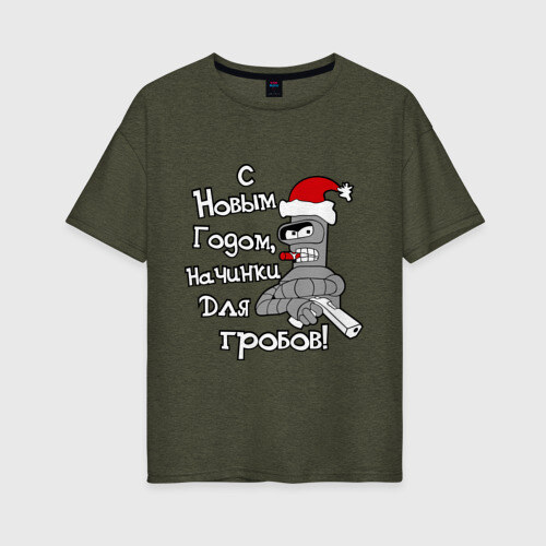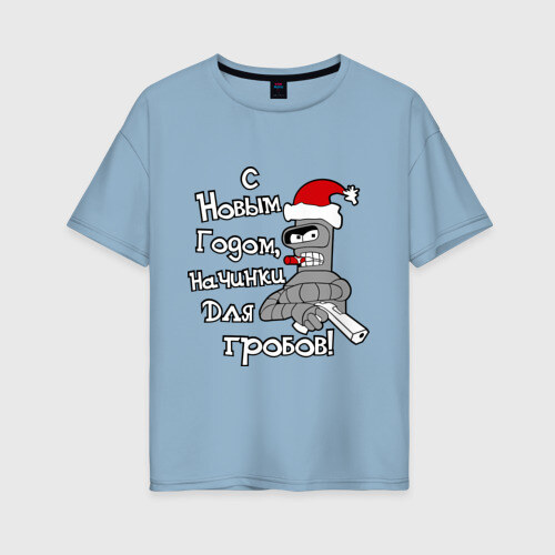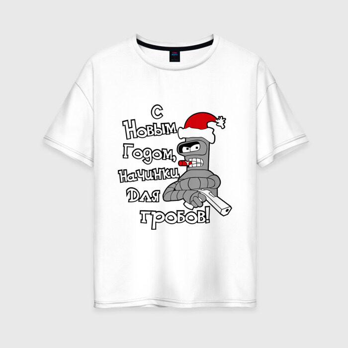Женская футболка хлопок Oversize с принтом bender с новым годом