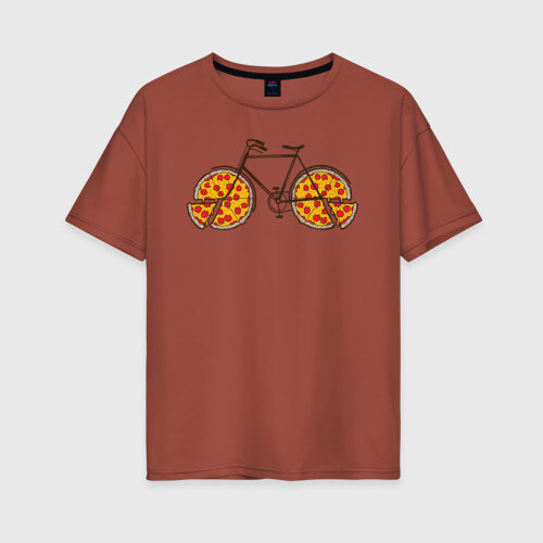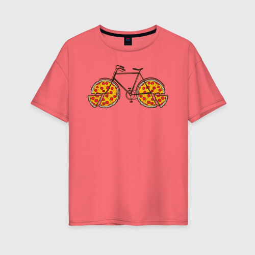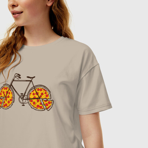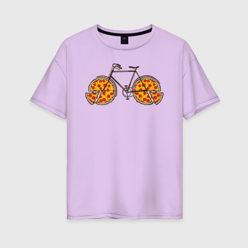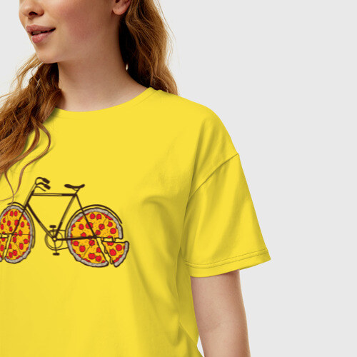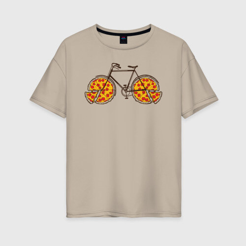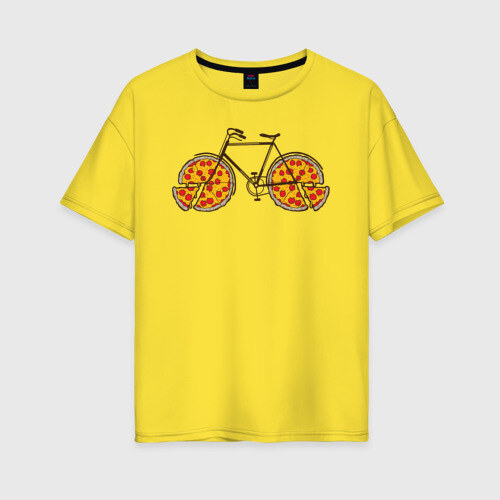 Женская футболка хлопок Oversize с принтом Пицца Велосипед