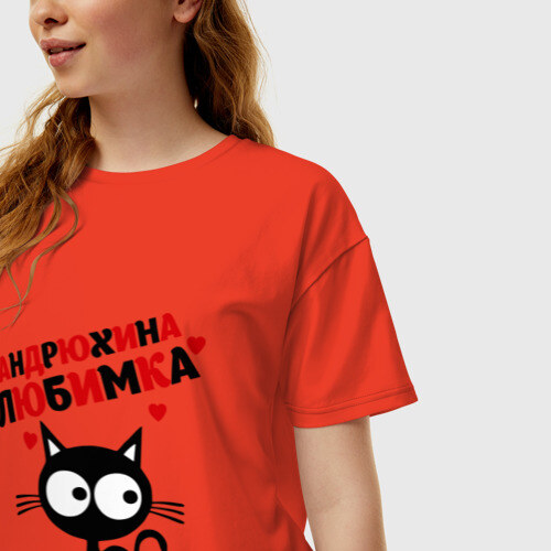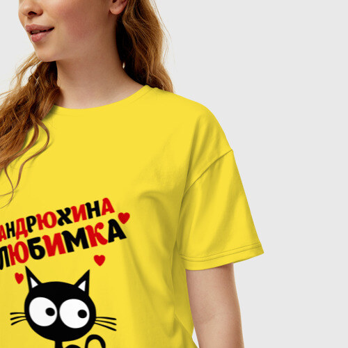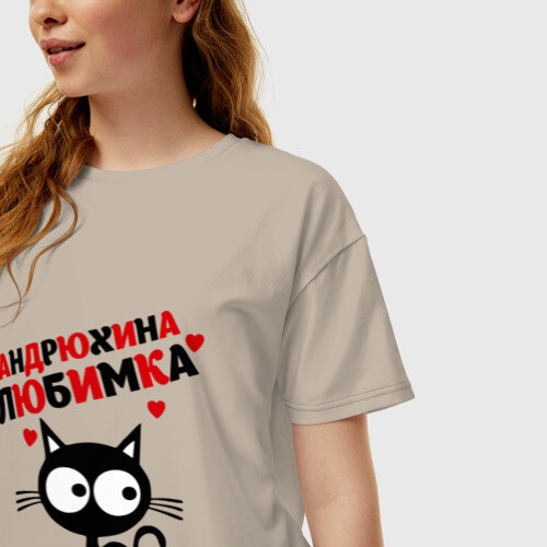 Женская футболка хлопок Oversize с принтом Андрюхина любимка