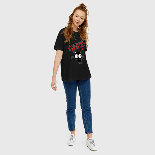 Футболка свободного кроя со спущенными рукавами, длина до линии бедер. Свободный крой позволяет носить футболку и с брюками, и с джинсами. Выполнена из 100% хлопка, благодаря чему кожа дышит и не раздражается. Принт нанесен методом прямой печати, что позволяет сохранить цвет и яркость после многочисленных стирок. Сделано в России.