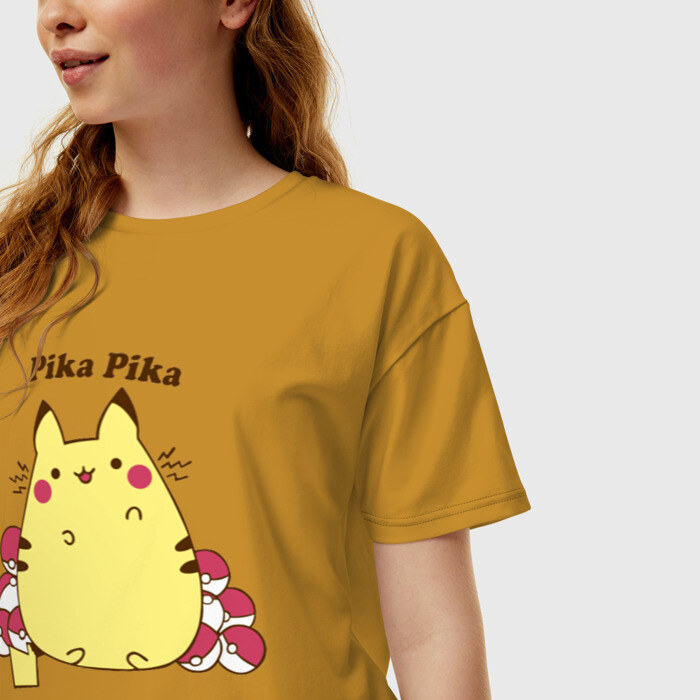 Женская футболка хлопок Oversize с принтом Pika Pika
