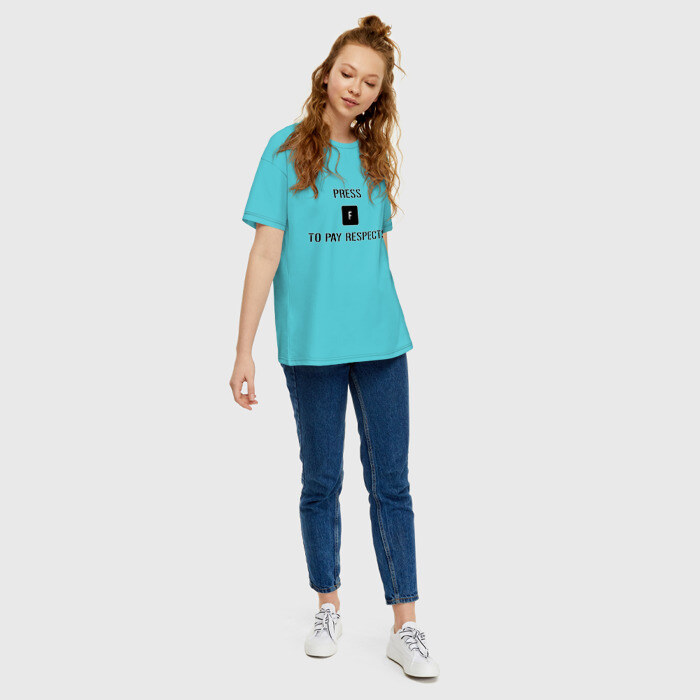 Женская футболка хлопок Oversize с принтом Press F to Pay Respects