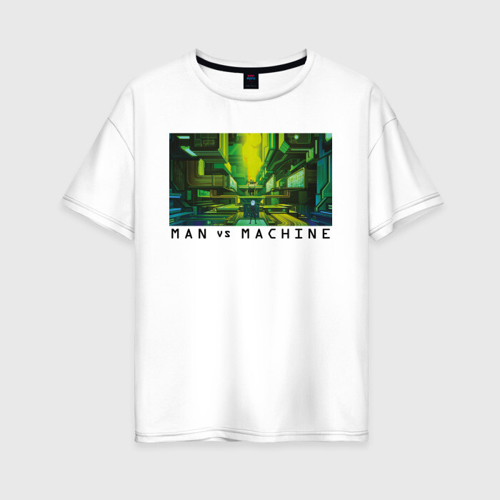 Женская футболка хлопок Oversize с принтом Man vs Machine
