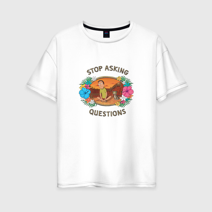 Женская футболка хлопок Oversize с принтом Stop Asking Questions