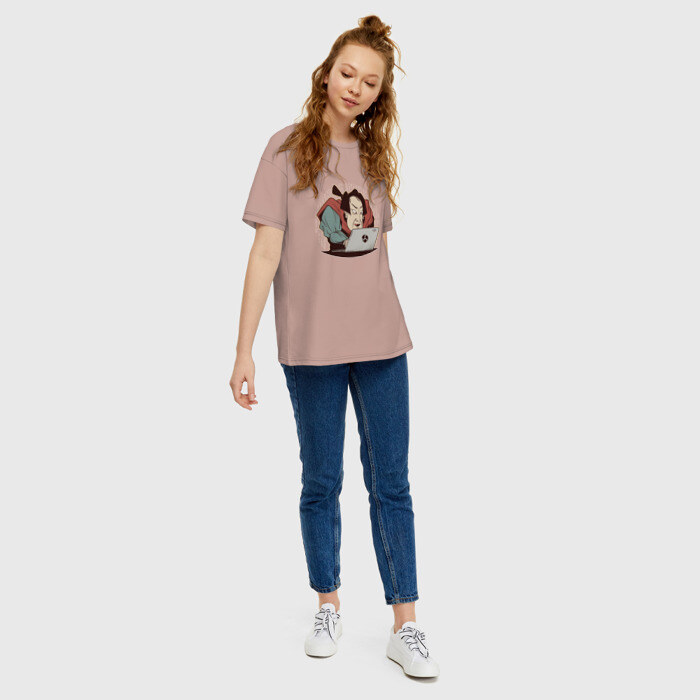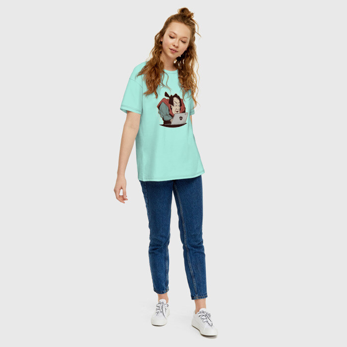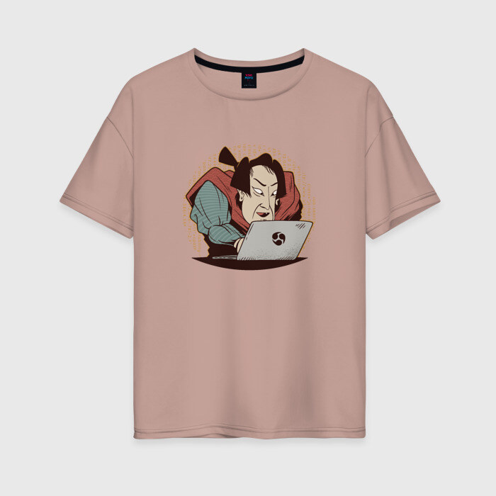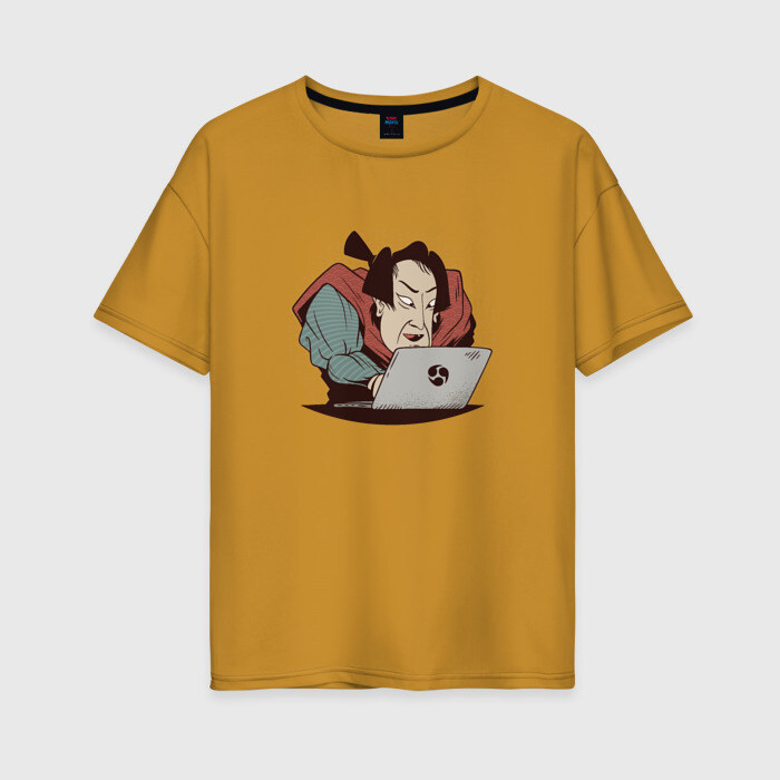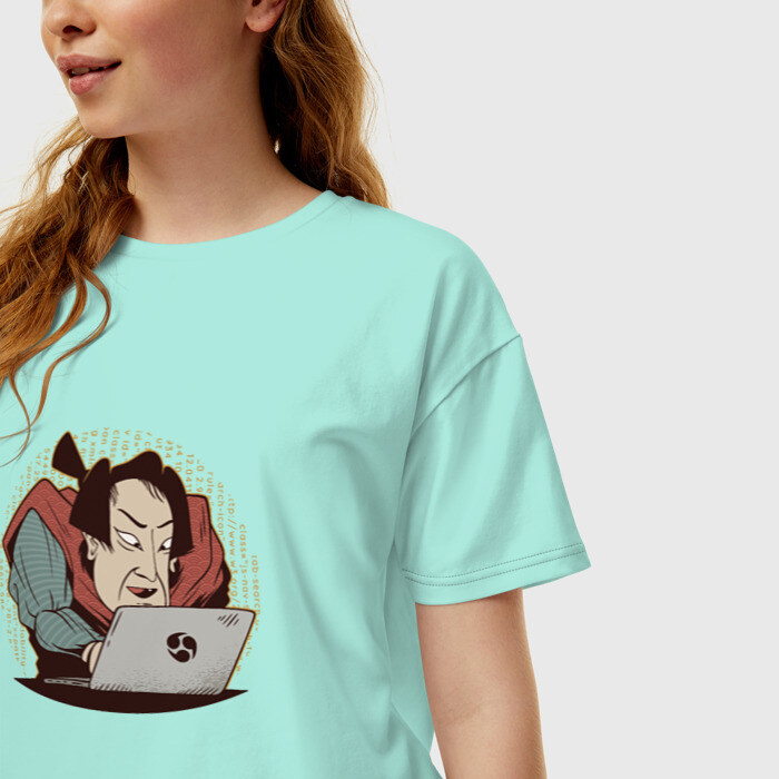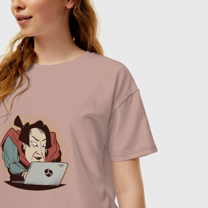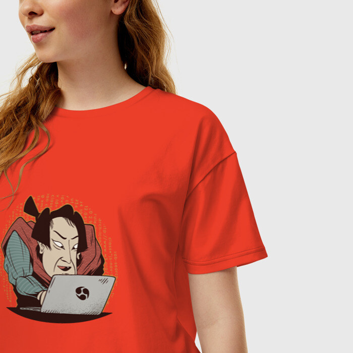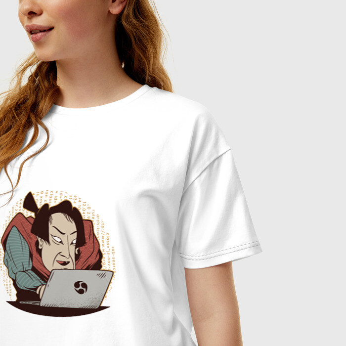 Женская футболка хлопок Oversize с принтом Самурай Кодер