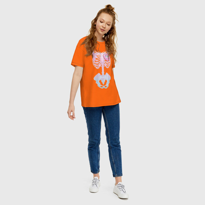 Футболка свободного кроя со спущенными рукавами, длина до линии бедер. Свободный крой позволяет носить футболку и с брюками, и с джинсами. Выполнена из 100% хлопка, благодаря чему кожа дышит и не раздражается. Принт нанесен методом прямой печати, что позволяет сохранить цвет и яркость после многочисленных стирок. Сделано в России.