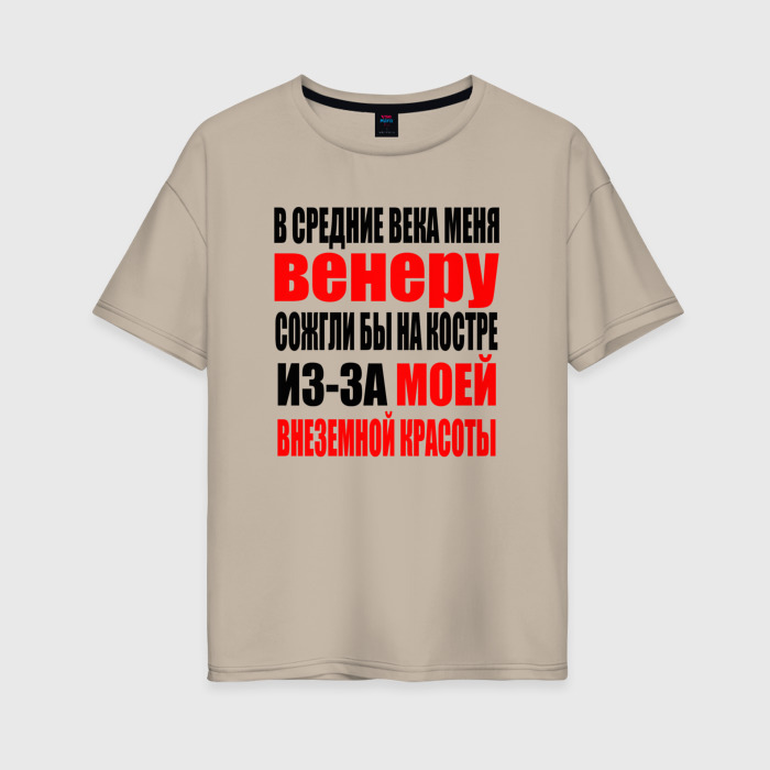 Женская футболка хлопок Oversize с принтом В средние века меня Венеру