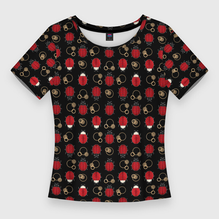 Женские футболки 3D Slim КРАСНЫЕ БОЖЬИ КОРОВКИ НА ЧЕРНОМ ФОНЕ LADYBUG