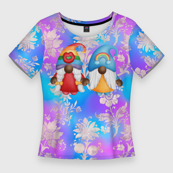 Женские футболки 3D Slim ДВА ГНОМИКА В ЦВЕТАХ