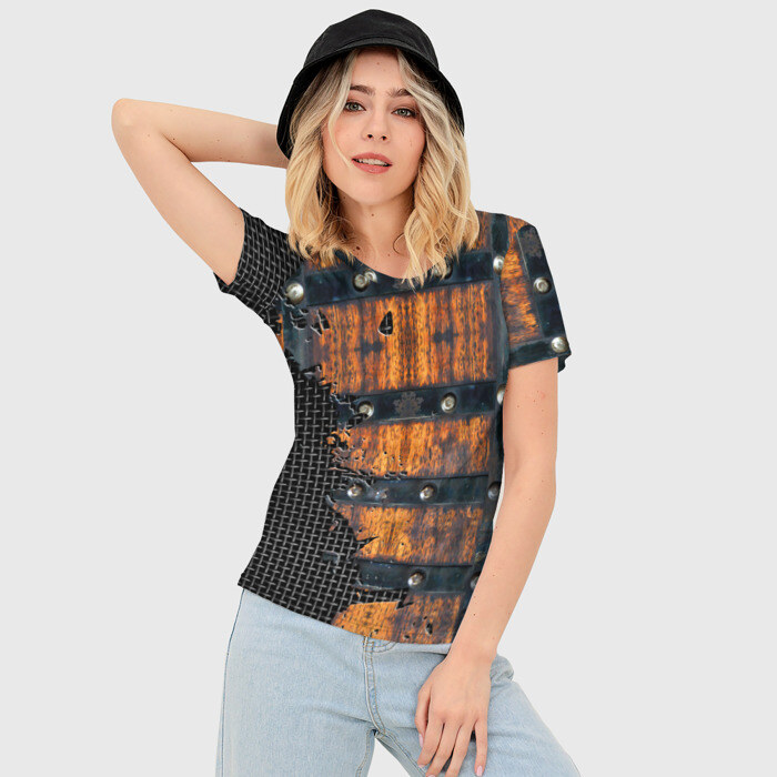 Женская футболка 3D Slim Металлическая клепаная обшивка